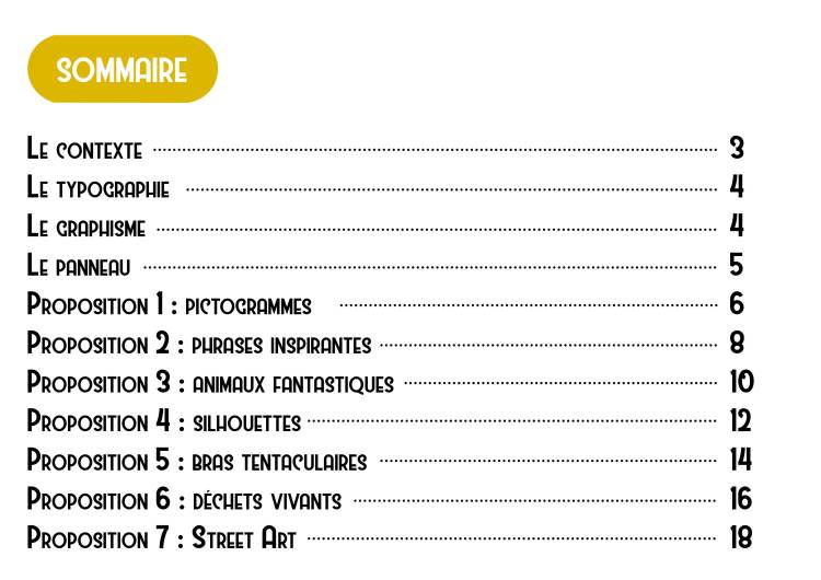 Voilà ci-dessous le dossier regroupant toutes les propositions faites aux agents. Le choix de faire des propositions ne correspondant pas à la commande est délibéré : toutes les possibilités sont ainsi balayées, permettant à la collectivité d’avoir une vision exhaustive des possibilités.