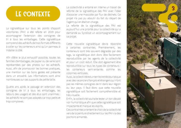 Cette réalisation n’a pas été faite dans le cadre de ma micro-entreprise mais dans le cadre de l’activité salariée que j’occupe en parallèle dans un Syndicat public de traitement des déchets. Cette production nécessite néanmoins que je vous la présente ici du fait du travail et de la recherche graphique réalisés.